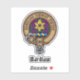 Clan Wardlaw crest badge surrounded by a strap and buckle over tartan background. Custom text.