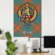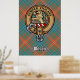 Clan Wilson crest badge surrounded by a strap and buckle over ancient tartan background. Custom text.