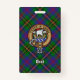 Clan Wood crest badge surrounded by a strap and buckle over tartan background. Custom text.
