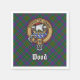 Clan Wood crest badge surrounded by a strap and buckle over tartan background. Custom text.
