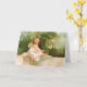 A charming vintage greeting card featuring a beautiful angel sitting on a wall and playing the harp surrounded by butterflies, painted by the American illustrator/commercial artist Ellen Hattie Clapsaddle.