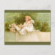 A charming vintage postcard featuring a beautiful angel sitting on a wall with a book and margarets, painted by the American illustrator/commercial artist Ellen Hattie Clapsaddle.