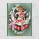 A beautiful vintage postcard featuring a beautiful cherub on a sickle moon surrounded by flowers, painted by the American illustrator/commercial artist Ellen Hattie Clapsaddle.