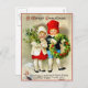 This vintage Christmas postcard by Ellen Clapsaddle features two adorable children outdoors; they are dressed warm for the winter weather. The girl is carrying a bundle of mistletoe and the boy is carrying a wreath of holly and berries. A message at the top of the card is: A Merry Christmas and another message at the bottom of the card is: All Merriment and much Good Cheer, A Christmas bright I wish you, dear.