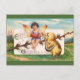 A beautiful vintage postcard featuring a cute fairy making music with a chicken, painted by the American illustrator/commercial artist Ellen Hattie Clapsaddle.