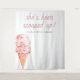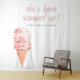 This "she's been scooped up" bridal shower photo backdrop banner features features watercolor blush ice cream and a fun retro inspired font. Use this template to edit the fonts, font colour, and background colour to match your event needs.