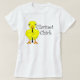 Clarinet chick in curly white text with a cute yellow chick holding a clarinet is a funny gift design for woodwind musicians, teachers and students in concert and marching band at back to school, birthdays, holidays and graduation.