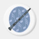 Blue music notes dance around a clarinet on this fun music gift for clarinet players.