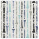 Clarinet pattern fabric in shades of blue and grey.
