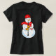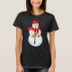 A snowman clarinet player wearing a music note scarf is a funny winter music gift design for woodwind musicians, school music teachers and students in concert and marching band.