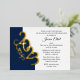 Classic 2023 graduation invitation in navy blue with elegant gold foil. Modern and elegant graduate announcement with grad party information and lots of room on back for one large photo create your own collage.