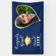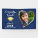 This elegant light navy blue, gold and white graduation banner for the class of 2025 graduate features a heart-shaped photo, a "Congrats, Grad!" saying, and a graduate's cap illustration. Please personalise with the graduate's name, upload a custom photo via template, and change a year before ordering.