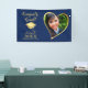 This elegant blue and gold graduation banner for the class of 2025 graduate features a heart-shaped photo, a "Congrats, Grad!" saying, and a graduate's cap illustration. Please personalise with the graduate's name, upload a custom photo via template, and change a year before ordering. The background colour is customisable (you can change it inside the design tool).