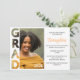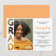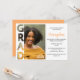 Stylish personalized graduation party invitation for NURSING Graduate, with customizable photo, name, year, university and message on the back. Designed with GRAD photo mask detail and in nurse grad color of apricot. Matching stationery available.