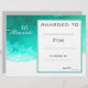 A stylish modern class art award certificate award with cute paint splash watercolor blue aqua image perfect for encouraging a young art student. You can write in your own details. A great resource for any type of classroom teacher.