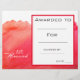 A stylish modern class art award certificate award with cute paint splash watercolor red image perfect for encouraging a young art student. You can write in your own details. A great resource for any type of classroom teacher.