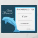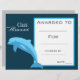 A stylish modern class award certificate award with cute dolphin image perfect for encouraging a young student. You can write in your own details. A great resource for any type of classroom teacher.