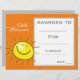 A stylish modern class award certificate award with cute sunshine image perfect for encouraging a young student. You can write in your own details. A great resource for any type of classroom teacher.