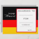 A school class academic award certificate award with a German flag black red and yellow theme image in perfect for encouraging a young German language student. You can write in your own details. A great resource for any type of classroom teacher. Black yellow and red theme