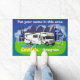 This doormat can be customised to show your name on top. When used outside of your RV, people will know who they are talking to when they see you. Non-slip rubber that won't crack or buckle, this mat resists fading, mould, and mildew and can be easily cleaned with a hose. This version is a Class C similar to a Coachmen Freelander. It can be used indoors or out and makes a great welcome mat for your campsite, wherever you may go. To customise the name, click on the text "put your name in this area" and change it to whatever you want. If you don't see the text change on the actual design, you haven't done it quite right. You might have to double-click on some devices to be able to change it. Happy camping!