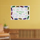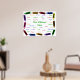 A poster featuring illustrations of red, yellow, blue, green, orange, purple, pink, and brown crayons around the edges. Personalise with your name in centre. Kids names go all around. There is room for 30. This is an easy alternative to the usual cutting, taping, and writing that goes into putting together a traditional bulletin board for your classroom.