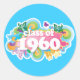 (Did you graduate in the Class of 1960? It's time to show some class pride with this beautiful retro style 1960 graduate logo featuring swirls and stars in pink, green, blue and purple. Great for a 1960 class reunion or grab a reunion gift or 1960 stocking stuffer for a friend who graduated with you way back when.