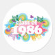 Did you graduate in the Class of 1986? It's time to show some class pride with this beautiful retro style 1986 graduate logo featuring swirls and stars in pink, green, blue and purple. Great for a 1986 class reunion or grab a reunion gift or 1986 stocking stuffer for a friend who graduated with you way back when.