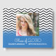 This graduation guest book features trendy black and white zigzags as the background accented with a blue gradient colour. White hand lettered style text reads: Class of 2017 with custom text for the graduate's name and school. Custom photo frame allows you to add a photo of the graduate. This design is accented with a mortarboard on the back.