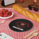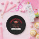 Modern black and red, personalised graduation party paper plates- Reads Congratulations! in curved, bold red letters at the top. Faux glitter, red graduation cap below with custom class year in white with shadow effect. Reads 'Graduation Party' in faux glitter, handwritten look, red script with stars and diploma/degree scroll below displaying grad's name in red lettering with shadow. On black background, which may be changed to any colour. Complements red and black school colours, formal college graduation, modern graduation celebrations, and glitter graduation party themes. We have matching red and black graduation party invites in our Zazzle.com/angela65* shop, as well as more personalised graduation party supplies.