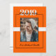 This orange & black Class of 2019 graduation invitation can be customised to invite to commencement exercises and/or a graduation party in honour of the graduate. This would work well for male or female graduate. The front features a portrait of the graduating student prominently placed with the 'class of 2019' above the photograph and the grad's name beneath. There is also a faux ribbon across the middle behind the picture. The back contains all the information required to attend the festivities. A black line and the 'class of 2019' are along the bottom edge. This invitation would work well for high school and college / university graduations.