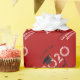 This graduation wrapping paper offers a 2020 graduation design in red and black with custom text for the graduate's name. The text reads: Class of 2020 Grad. A black mortarboard sits on top of the zero in the year. The background colour can be changed.