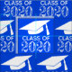 Royal blue background with white cap and text, stylish and classic graduation class of 2020 fabric! CHANGE THE BACKGROUND COLOR by choosing "customise it", then choosing a different "printed background" colour. Create fun custom face masks, gifts and party favours with graduation cap mortarboard and tassel. Get creative with this fun fabric for the male or female graduate of high school or college. This year has been challenging with quarantines, shelter in place and lots of distance learning and home schooling for seniors and students. Make your own face masks, home decor and accessories for a porch party, or while going about your day to day life. Celebrate the graduating class of 2020 in a unique and creative way!