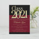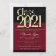 Bold gold class of 2021 burgundy and black graduation invitation or announcement. Change burgundy to match your school colours and edit text as preferred.