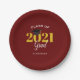 Class of 2021 Grad Simple Maroon and Gold Paper Plate