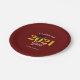 This maroon personalised paper plate is a perfect accent for any graduation party. The gold and white text reads: Class of 2021 Grad. A black mortarboard sits on top of the zero in the year.