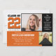 Class of 22 orange, white and black inspiration graduation invitation with two photos and a special message. Change colours and text as preferred.