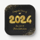 Class of 2023 Balloon, Black Gold Graduation Party Paper Plate