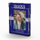 A blue and silver Class of 2023 graduation photo keepsake that you can personalise as a memento for the twenty, twenty-three graduate. The front is a classic blue with a fine white line surrounding the portrait of the graduating student. You can easily replace the sample photo with your own using the template area.