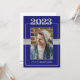 This blue & silver Class of 2023 graduation invitation can be customised to invite to commencement exercises and/or a graduation party in honour of the graduate. This would work well for male or female graduates. The front features a portrait of the graduating student prominently placed with the 'class of 2023' above the photograph and the grad's name beneath. There is also a faux ribbon across the middle behind the picture. The back contains all the information required to attend the festivities. A blue line and the 'class of 2023' are along the bottom edge. This invitation would work well for high school and college/university graduations.