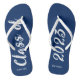 Show your stylish fashion while strutting in these Class of 2023 Graduation Blue Personalised Flip Flops. The sandals have a modern design with a customisable blue background and bold white trendy script lettering. The text is "Class of 2023" and you can change to any year by using the template made available. Name is in white minimalist letters across heel area. CLICK PERSONALIZE TEMPLATE OTPTION AND ENTER NAME.