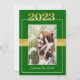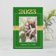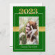This green & gold Class of 2023 graduation invitation can be customised to invite to commencement exercises and/or a graduation party in honour of the graduate. This would work well for male or female graduates. The front features a portrait of the graduating student prominently placed with the 'class of 2023' above the photograph and the grad's name beneath. There is also a faux ribbon across the middle behind the picture. The back contains all the information required to attend the festivities. A green line and the 'class of 2023' are along the bottom edge. This invitation would work well for high school and college/university graduations.