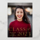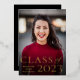 An elegant foil pressed graduation invitation featuring a vertical photo with Class of 2022 overlay and minimal editable text on the front. The back has a place to use to announce the graduation and party details.