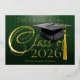 This Metallic Real Foil Gold and Dark Green graduation announcement or graduation party invitation is perfect for any college, high school or any level graduates. Classic design features dark green background with gold lettering, mortarboard graduate cap and tassel. Super Easy to personalise with your information. No photo needed, just add your information, and mail to friends and family with one of your own senior pictures. Formal and traditional classic style graduation invite for men or women of any age or grade level. Change the background colour of the front AND BACK by choosing "customise further".