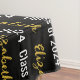 The tablecloth is black. It has a text pattern for the graduate's name and Class of 2023. The name (Shown: Elizabeth) appears in an elegant faux (not foil) gold script. The other text is white. All of the text can be edited.