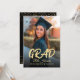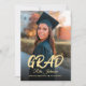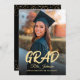 Elegant and modern Class Of 2024 Black Gold High School Graduation Invitation for graduate and graduation announcement. The invitation features a photo as a centerpiece with "grad" saying in bold script calligraphy, gold and black colour theme and glitter effects on the back. Perfect for college graduation announcement, high school graduation announcement, graduation 2024, class of 2024, college graduation and more.
