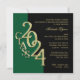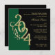 Class of 2024 printed gold and green graduation invitation or announcement with faux metallic gold year decoration in green school colours. Add a photo or additional text to reverse side of card.