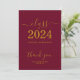 Celebrate in style with this simple and stylish graduation thank you card. Design features "Class of 2024" in gold font on a clean burgundy maroon background. Easy to customise. Get yours today!