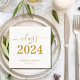 Stylish elegant custom graduation party supply! Celebrate the graduate's accomplishment in style with this trendy graduation paper napkin. Design features "Class of 2024" in gold font on a clean white background. Personalise this product by adding the name and school name. Easy to customise. Matching graduation party supplies available. Congratulations!