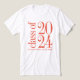 Proudly display the Class of 2024 and your school name on a tshirt, perfect for wearing to a grad party, class celebration, under your cap and gown, at school events, class reunions and more! Modern typography spells out your class year. You can edit this text template for any class year and any school, whether high school, trade school, college or university.