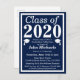 Show off your school spirit and honour your graduate with this Class of 2024 Navy White Graduation Postcard Invitation. Customise with your grad's class year, school and party details. It features a classic font in white against a navy background.